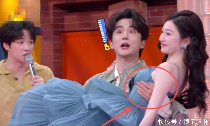 然而当张新成俯身托起景甜的瞬间,右手尚能维持基础托举,左手却在起身过程中持续上移,最终停驻于她胸廓下缘侧方,指尖几乎贴合肋骨曲线。